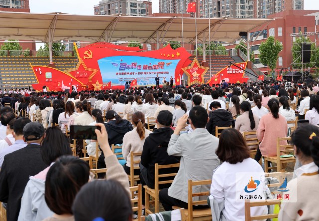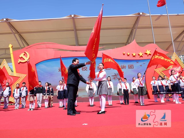 市委常委、宣傳部部長楊新忠與孩子們一起迎接他們新的成長階段,寄語孩子們刻苦學(xué)知識(shí),從小學(xué)黨史,厚植愛黨愛國愛社會(huì)主義情懷,立志聽黨話、永遠(yuǎn)跟黨走。副市長徐家保為連云區(qū)“校園紅色宣講團(tuán)”授旗。