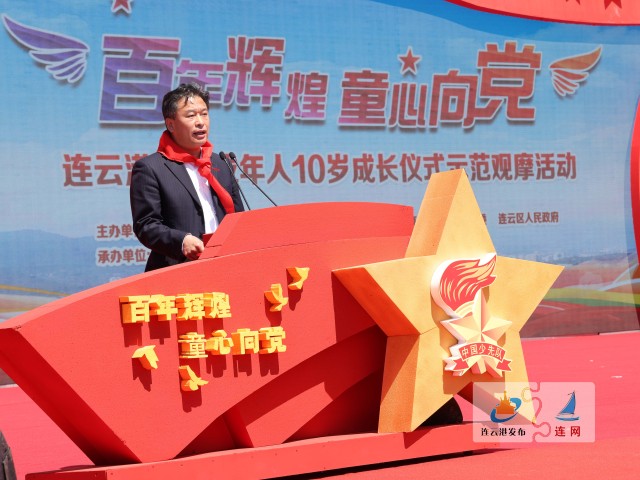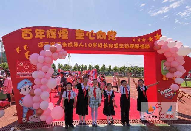 5月20日上午, “百年輝煌?童心向黨”連云港市未成年人10歲成長儀式示范觀摩活動(dòng)在蒼梧小學(xué)云山校區(qū)舉行。本次活動(dòng)以“10歲遇上100歲”的形式,見證同學(xué)們10歲的成長時(shí)刻,以此來慶祝中國共產(chǎn)黨百年華誕。市委常委、宣傳部部長楊新忠,市政府副市長徐家保出席活動(dòng)。