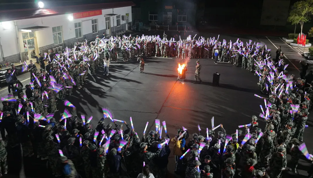 夜幕降臨時,除了齊聲唱響激昂軍歌,全體學生還在報告廳聽英雄故事宣講以及觀看愛國主義電影。軍人的鐵血擔當、熾熱的家國情懷,深深觸動了每一位學生的愛國心靈。